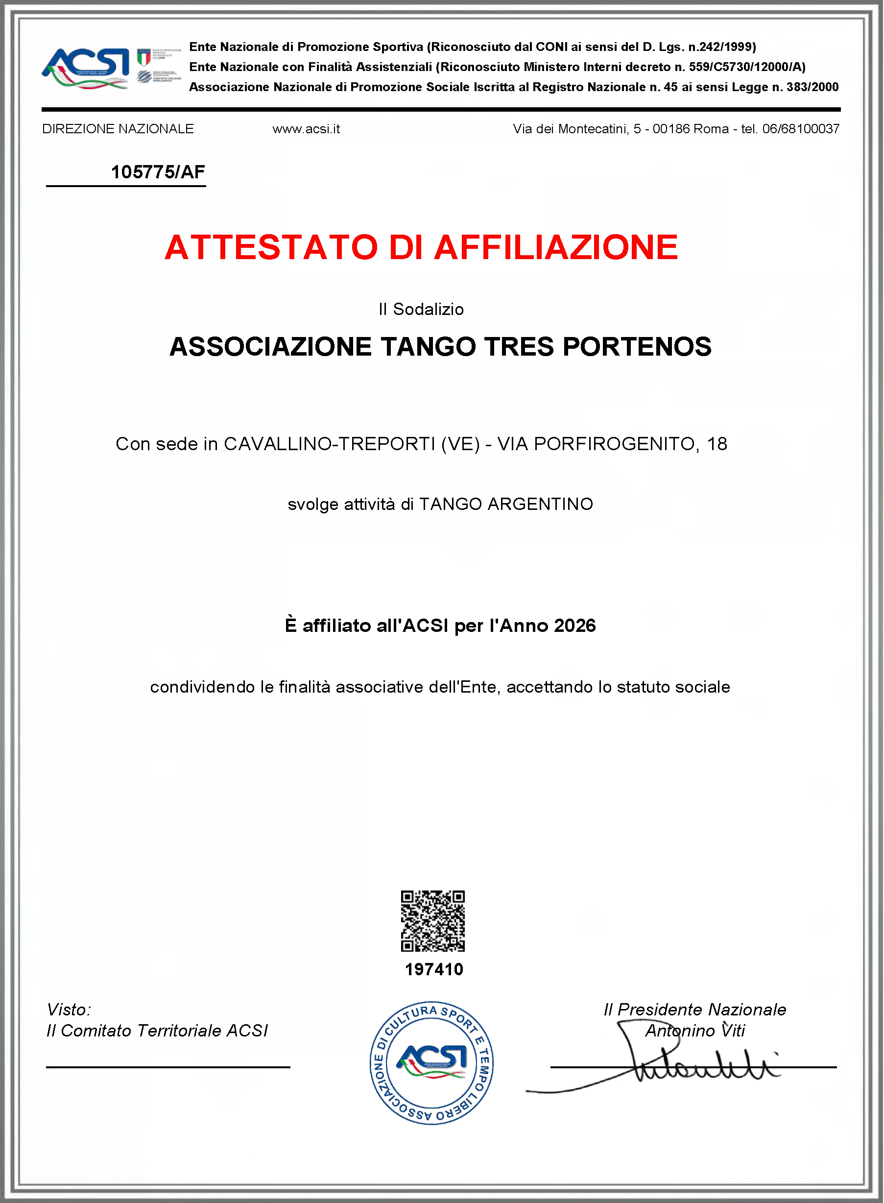 Soci liberi di scegliere ognuno il maestro pių consono, non siamo legati a nessuna scuola, non coltiviamo nessuna iniziativa ove si speculi su compensi o remunerazioni, operiamo gratuitamente solo per passione del tango e per diffonderla.